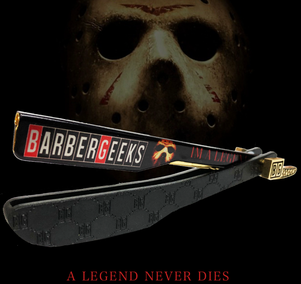 The NEW BarberGeeks Black and Gold “IM A LEGEND” Razor is a beautiful well crafted one of a kind razor.  It takes double edge blades and has a tension screw to tighten or losen the handle motion. This just might be the razor for you. Very light weight and very comfortable to use