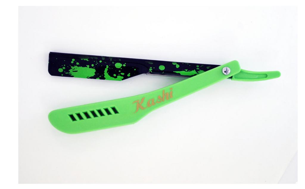 • Exceptional Professional quality kashi razor holder Art/Green slide made from Japanese stainless steel swing type mechanism.