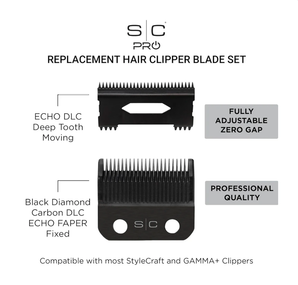 StyleCraft ECHO Fixed DLC Clipper Blade & Deep Tooth DLC Cutter Set (SC545BL)