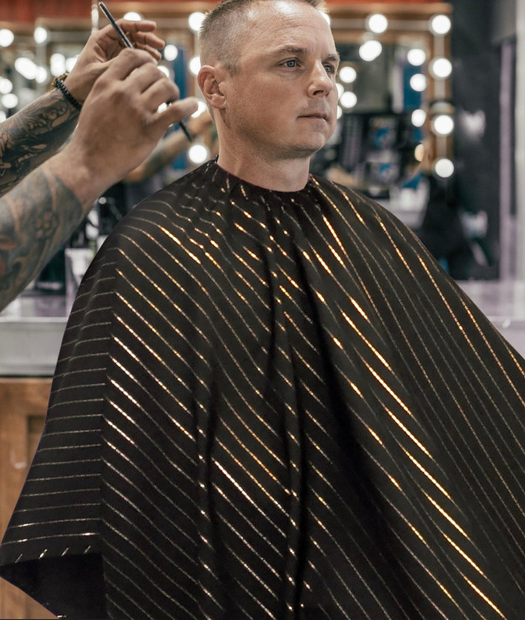 Barber Strong barber Cape Black with Gold Pinstripe