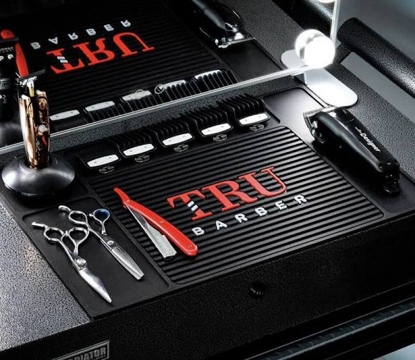 • keeps barbering tools organized and secure while protecting both countertops and workstations.
