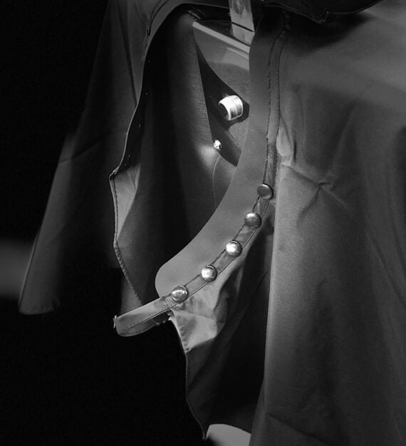 TRUBARBER PROFESSIONAL BARBER CAPE – Black With Red Letters